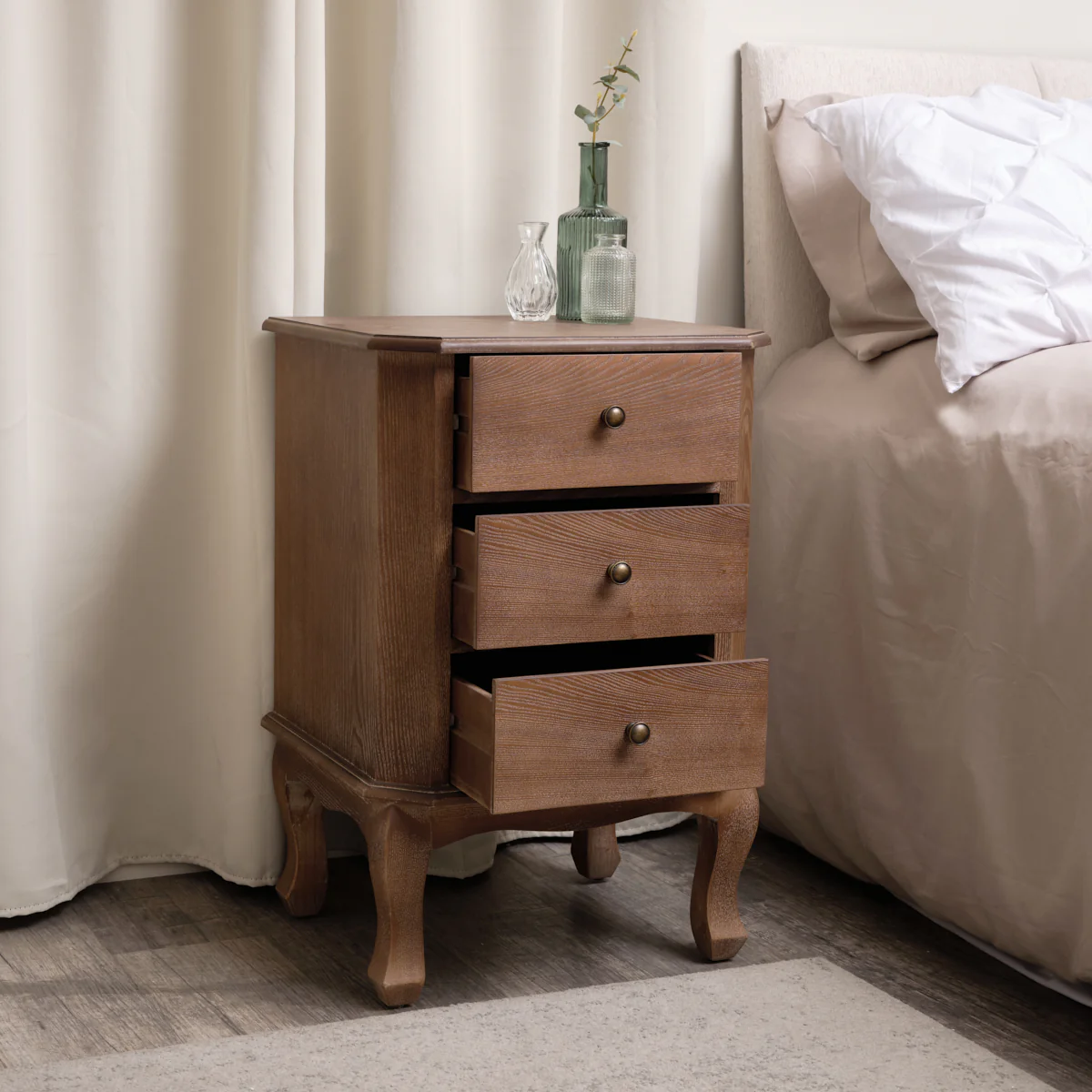 Dark Wood 3 Drawer Bedside Table - Ashwell Range