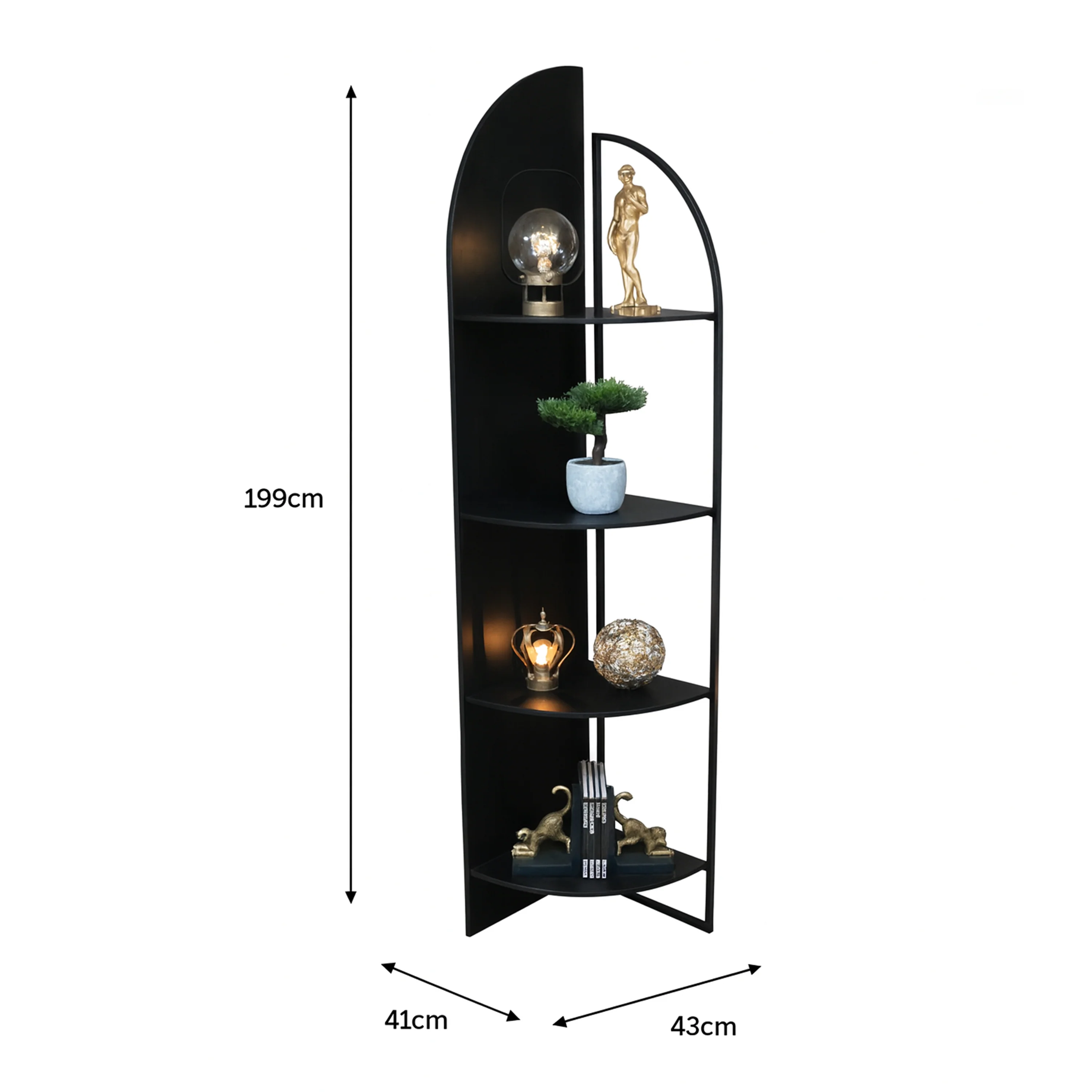 This beautiful Freestanding Black Corner Shelf is an industrial style shelving unit, perfect to keep your space organized. Made of metal with a Black finish. Sleek and modern, this stylish shelving piece can easily blend into a variety of rooms and interior styles.