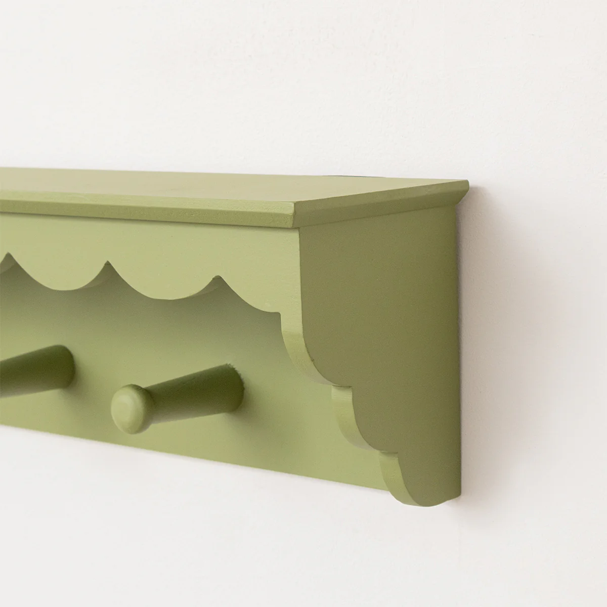 Green Painted Scalloped Edge Coat Peg Rail Hooks with Shelf - 80cm
