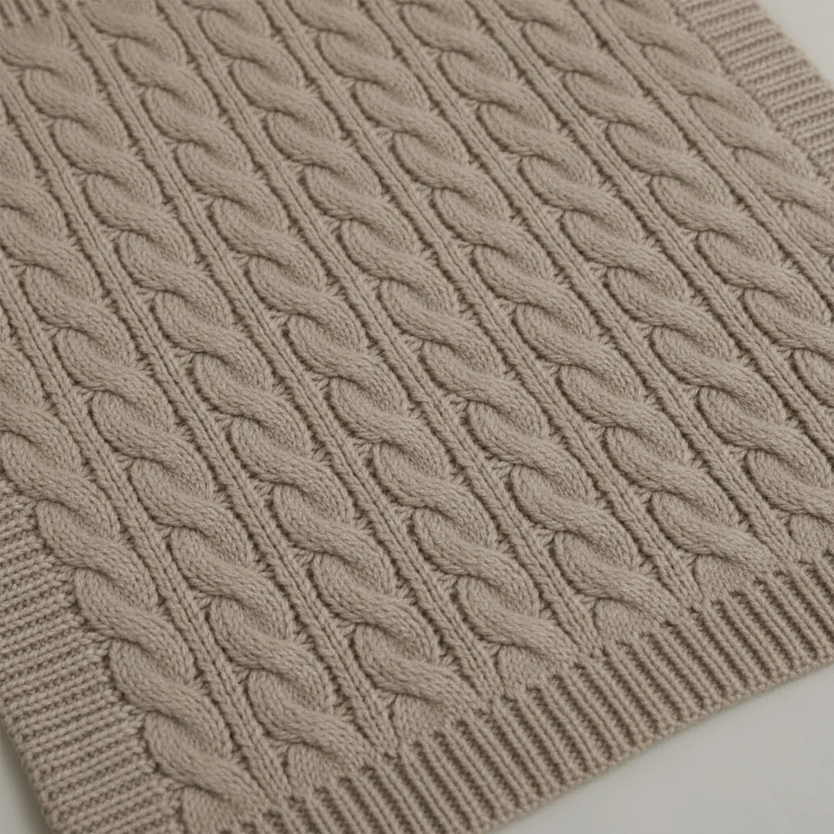 Large Pale Taupe Cable Knit Throw - 160cm x 150cm