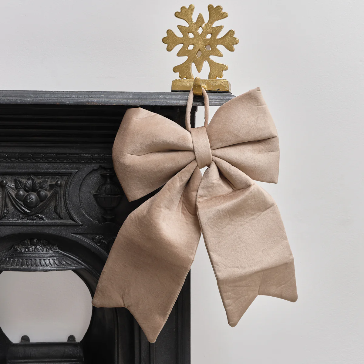 Large Taupe Velvet Christmas Bow - 30cm x 45cm