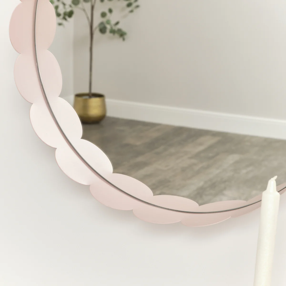 Light Pink Scallop Framed Round Mirror - 50cm x 50cm