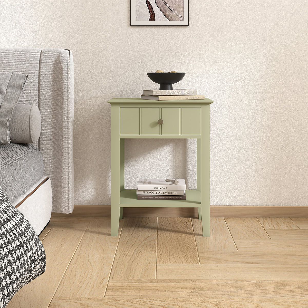 Pair Of Sage Green One Drawer Bedside Tables with Shelf - Padstowe Sage Green Range