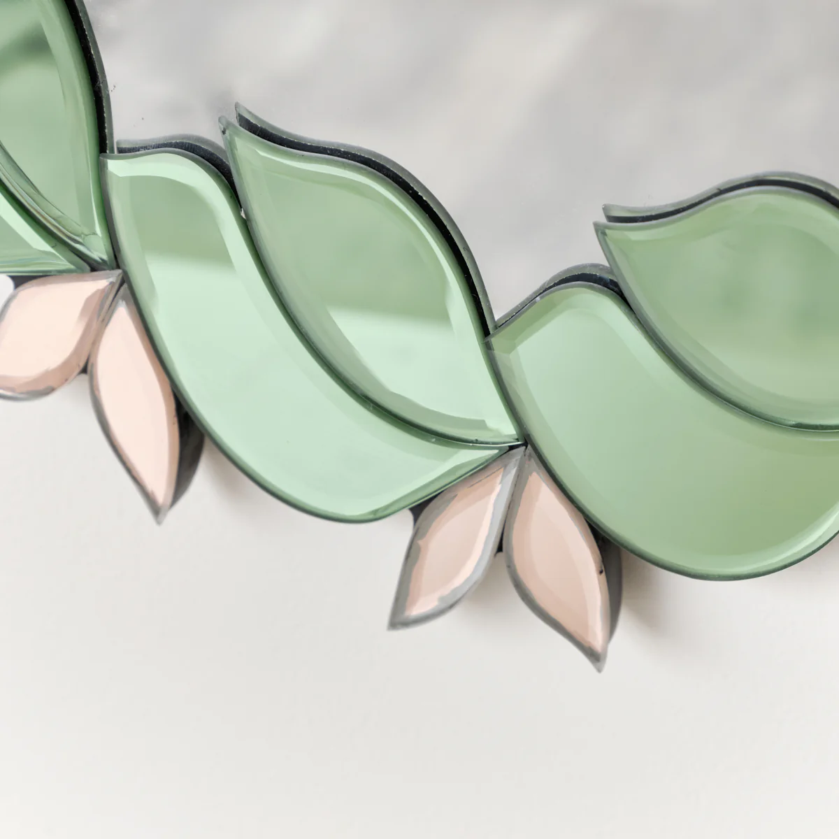 Pink & Green Oval Floral Art Deco Wall Mirror 80cm x 49cm